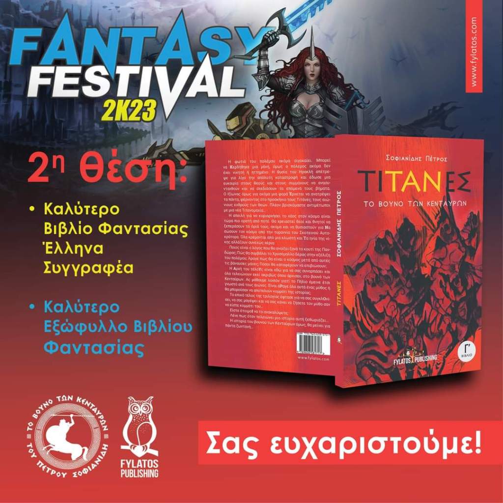 Το τρίτο βιβλίο της τριλογίας μας «Τιτάνες – Το Βουνό των Κενταύρων», έλαβε την 2η θέση σε δυο κατηγορίες, στα βραβεία «Everly» του Fantasy Festival!